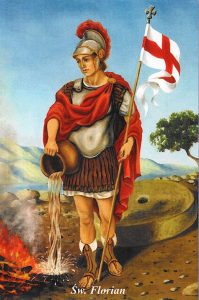 Legenda mówi, że w XII wieku, do Krakowa trafiły relikwie świętego Floriana. Ku jego czci wystawiono wówczas kościół w dzielnicy Kleparz. Gdy pożar trawił tą część miasta, okazało się, że jedynym ocalałym budynkiem, była właśnie świątynia świętego Floriana. Od tej pory jest on uznawany za patrona strażaków. Przyzywa się go również w modlitwach podczas klęsk, takich jak sztormy, powodzie i pożary. Patronuje również kominiarzom, hutnikom, garncarzom i piekarzom.